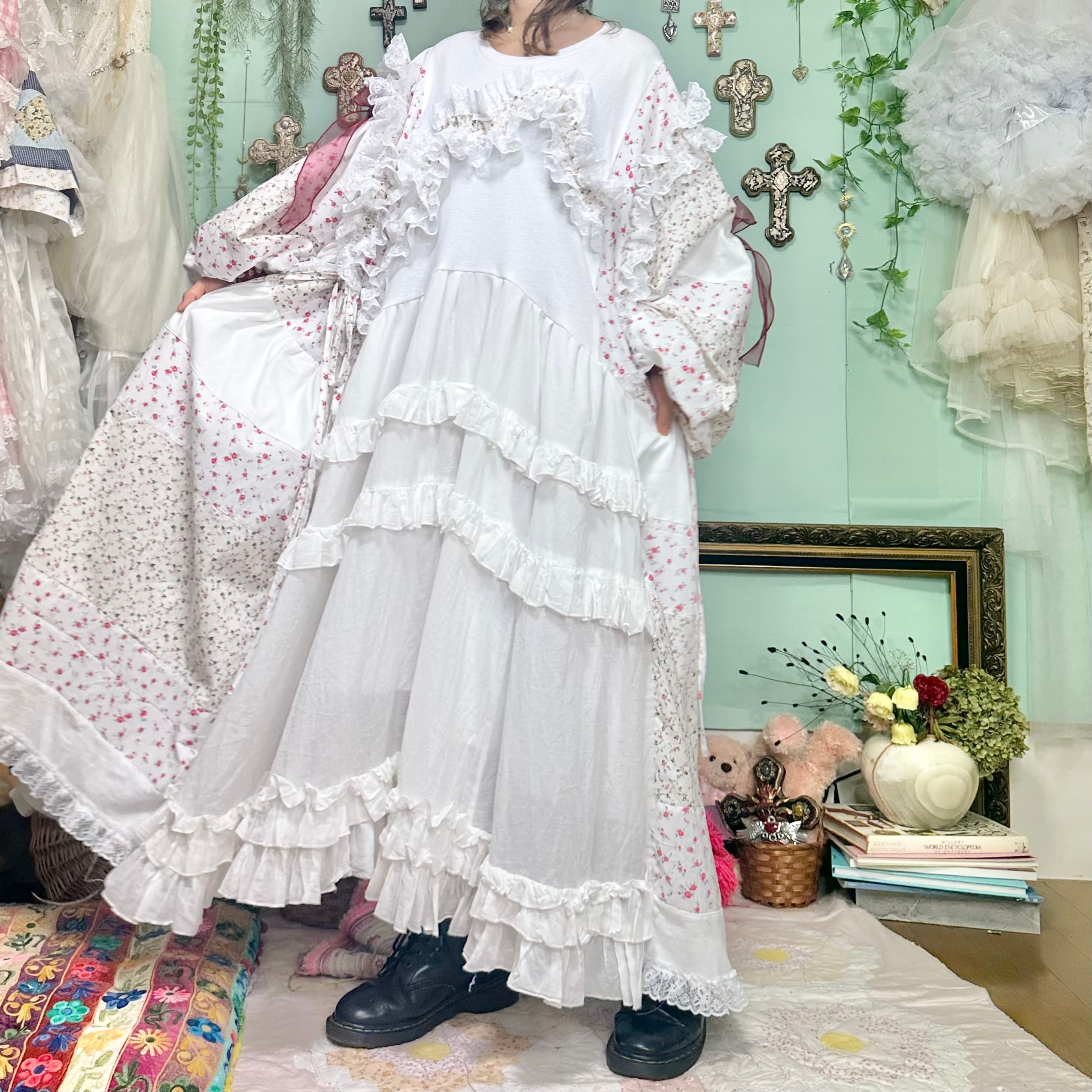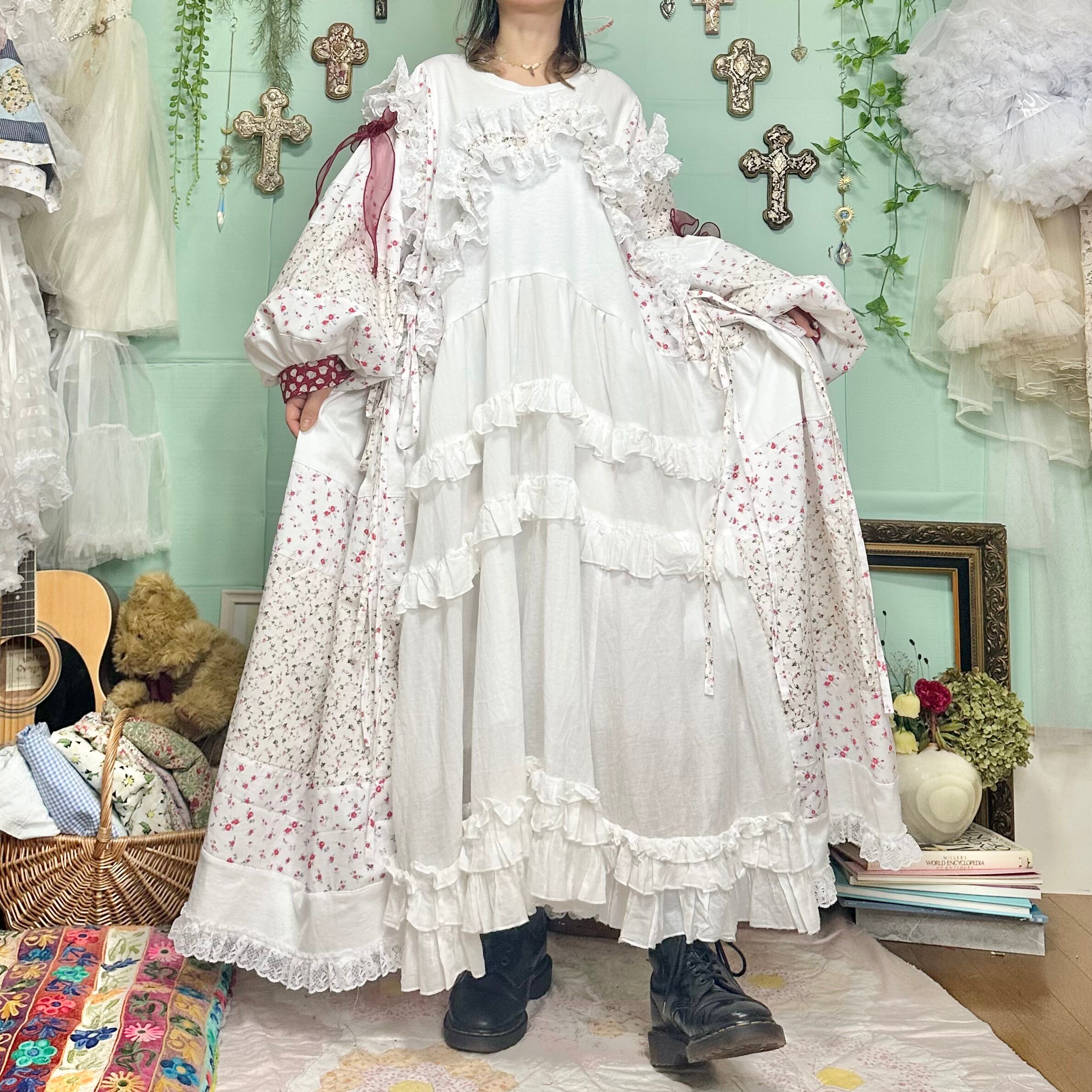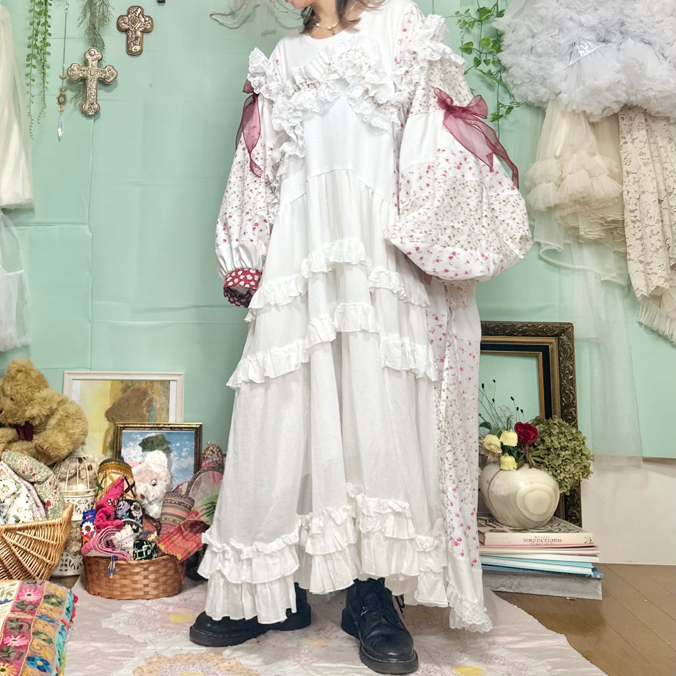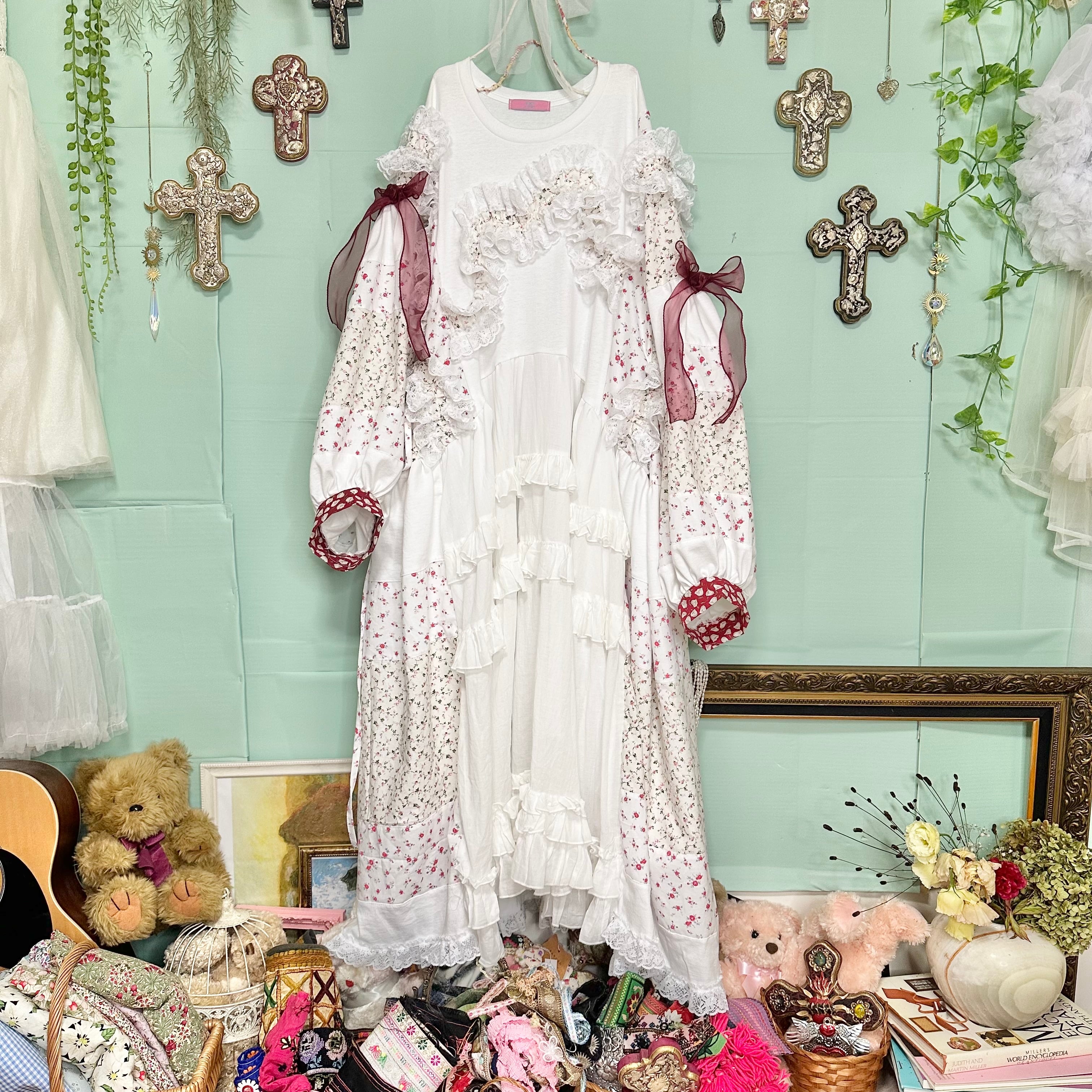 左右非対称な見頃とフロントのフリルの装飾はズレたお茶目さを演出。