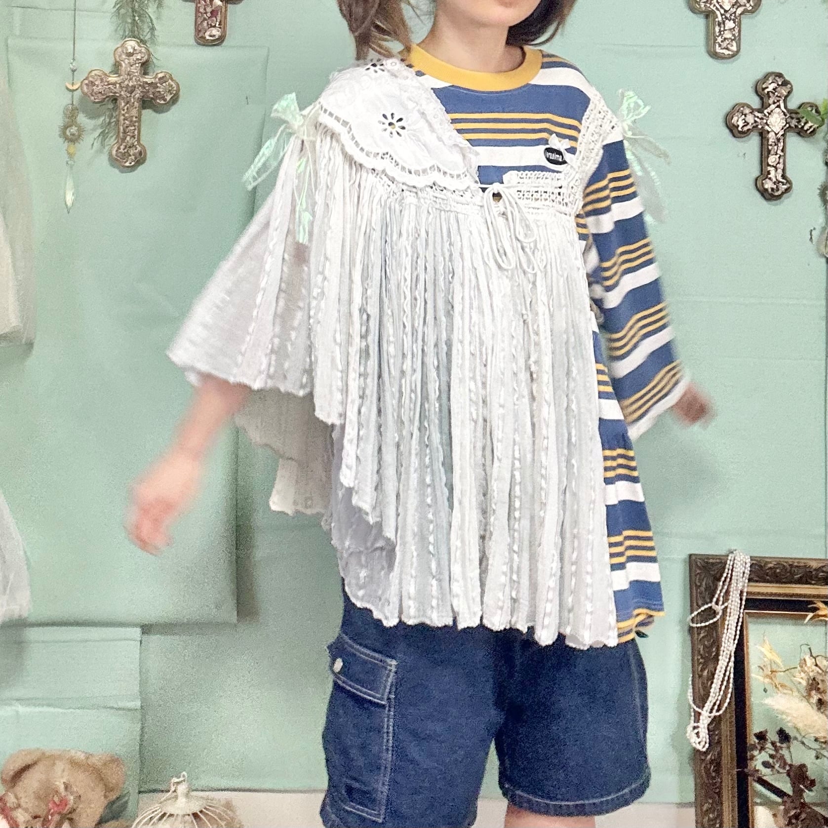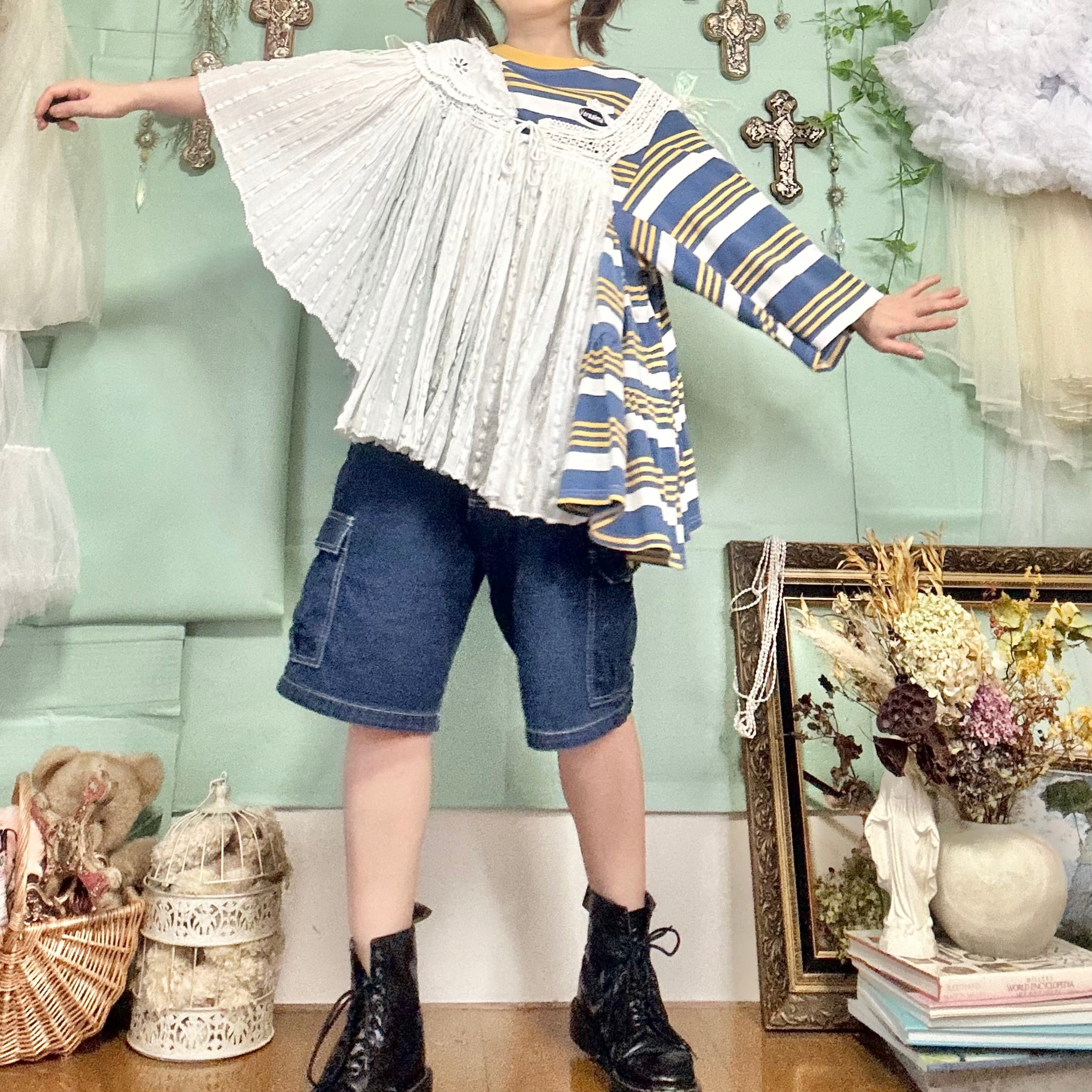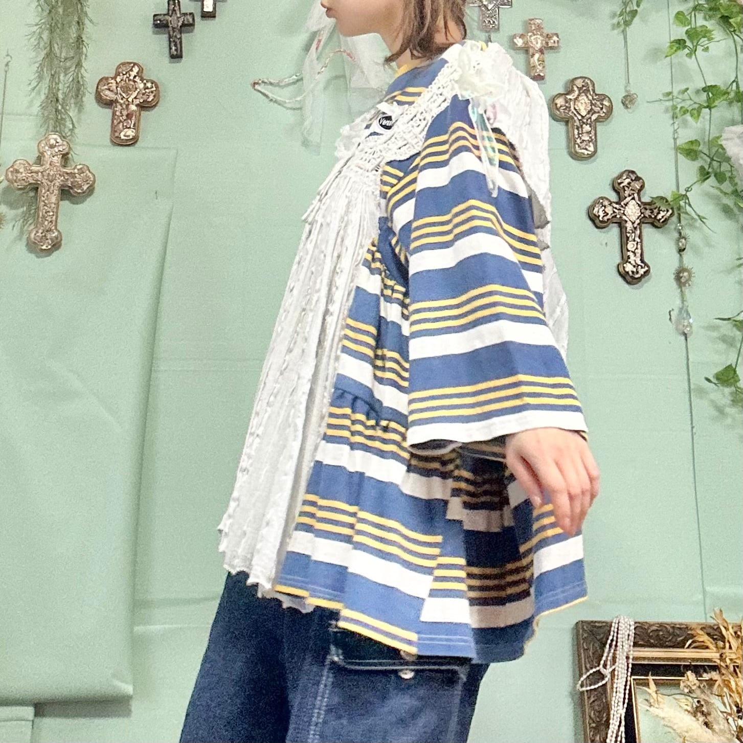 ※前後、左右で着丈やサイズが変わります。ボーダーのトップスは厚手になりますがギリシャトップスは薄手の為、インナー着用をお勧めします。