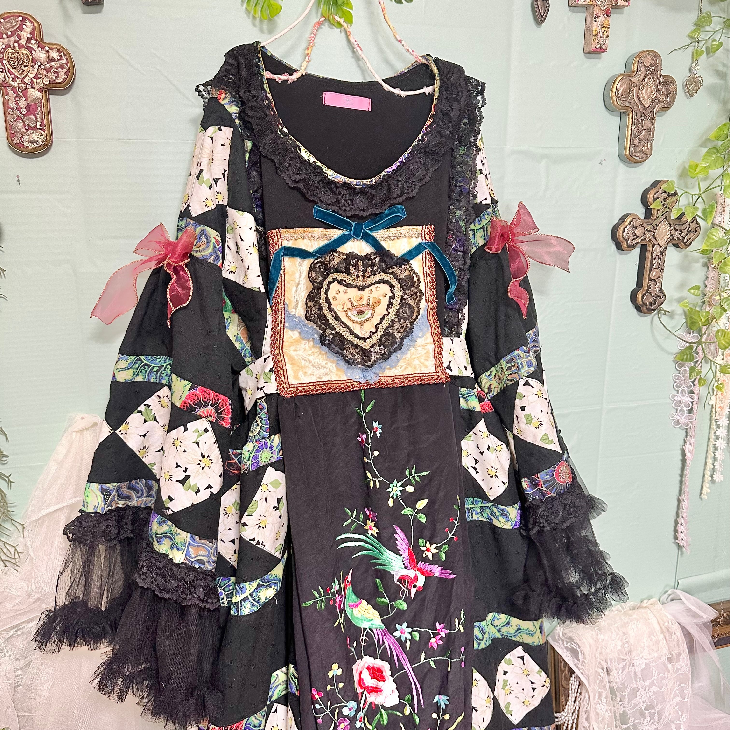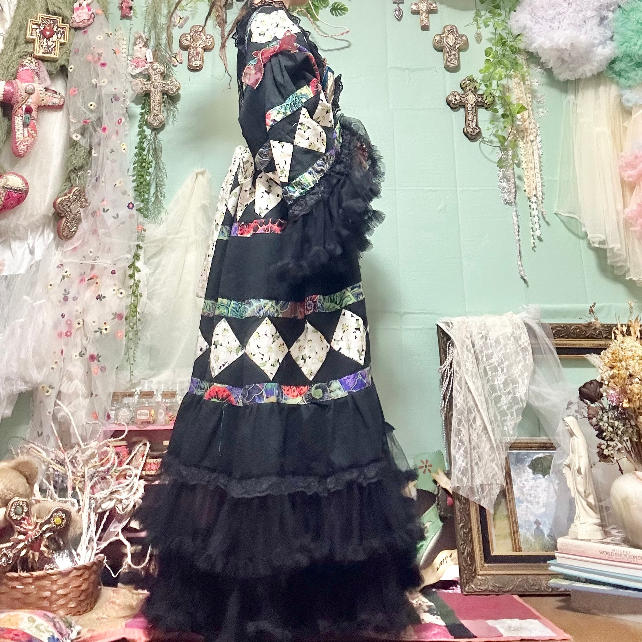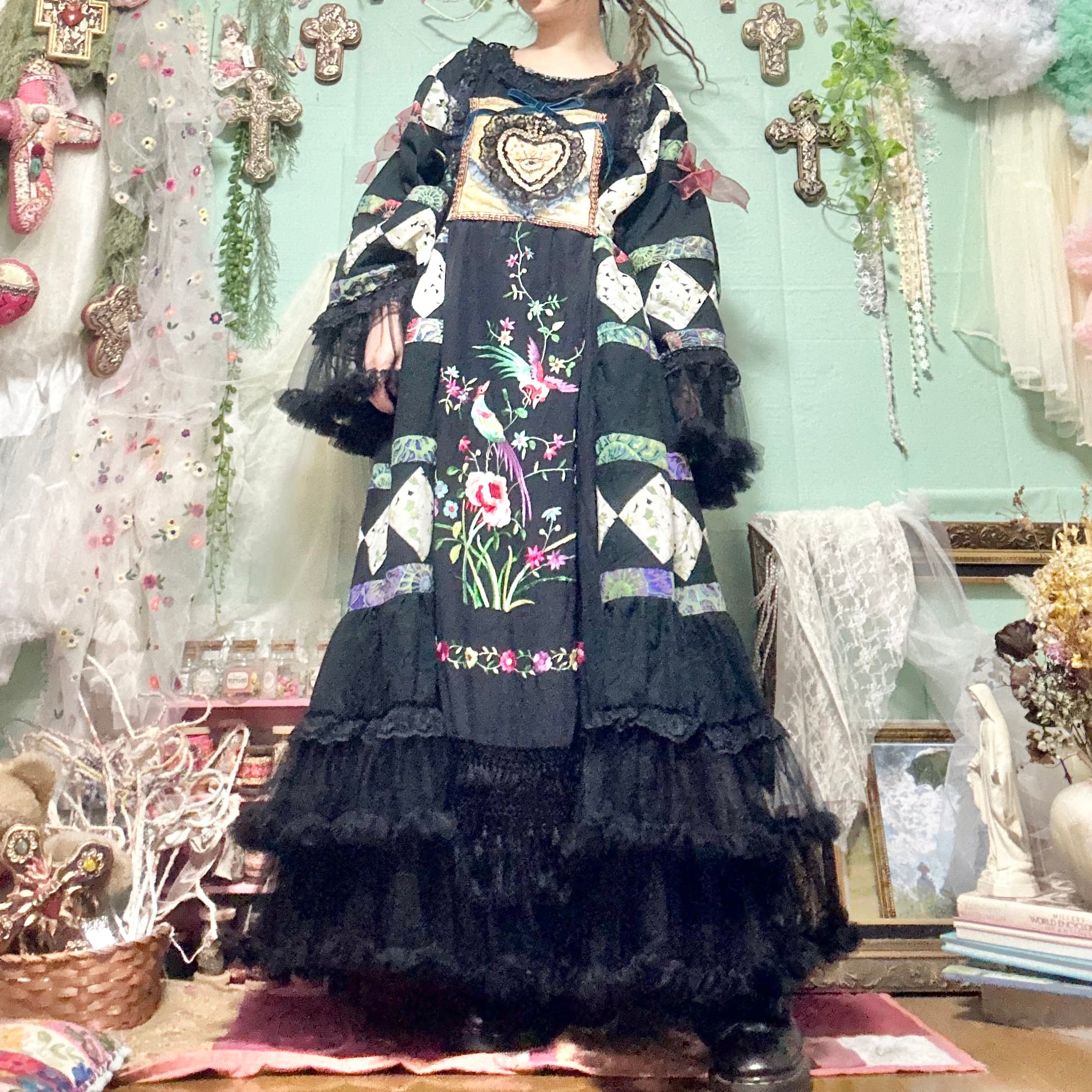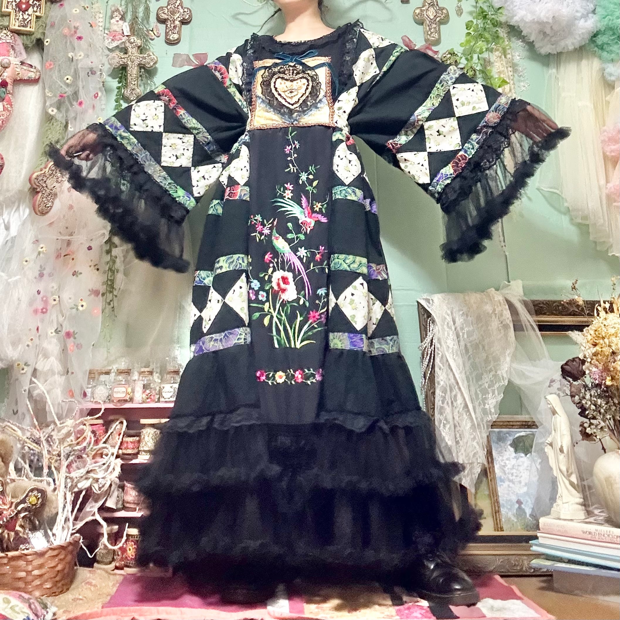 鮮やかに繁栄する花と鳥の刺繍のスカート等、無意識にあった素材を駆使し