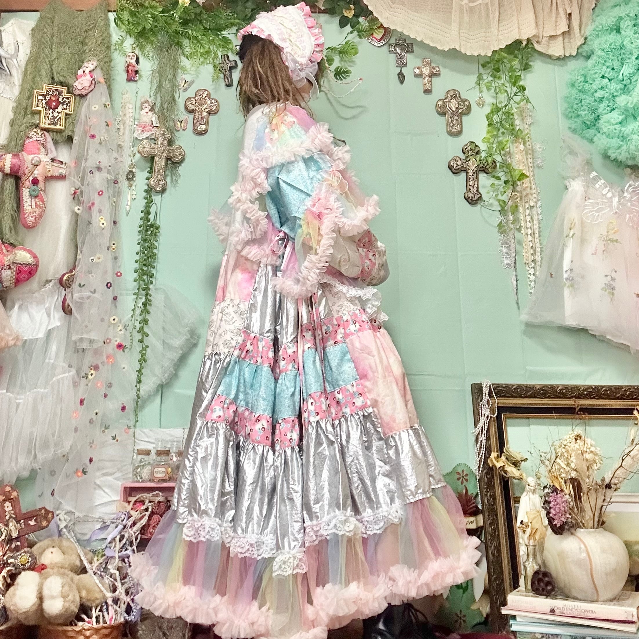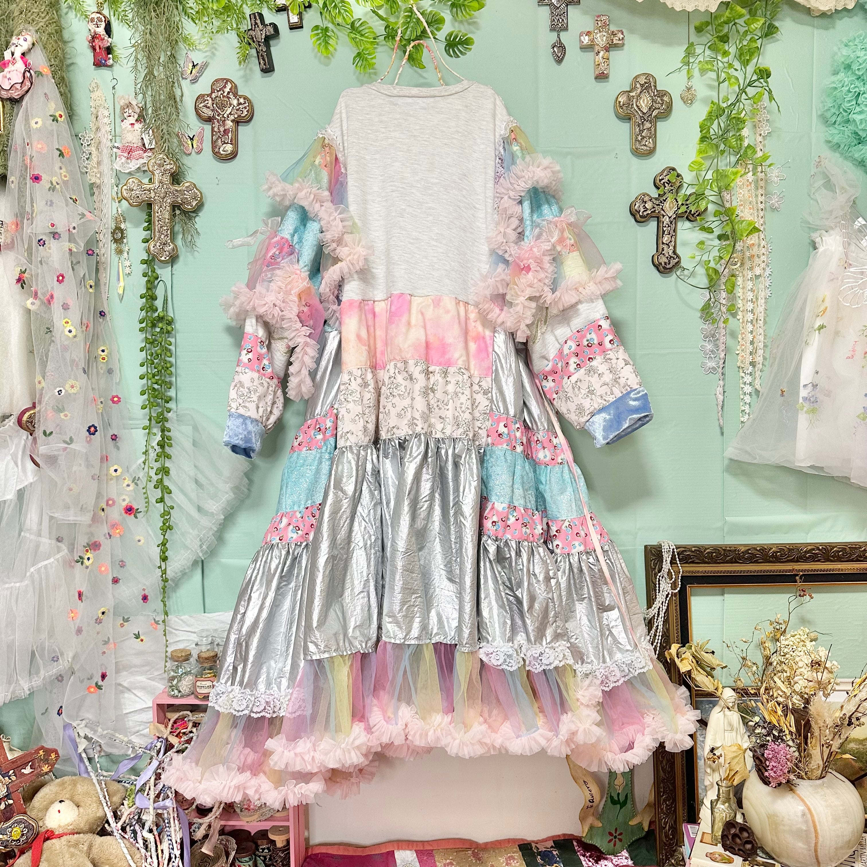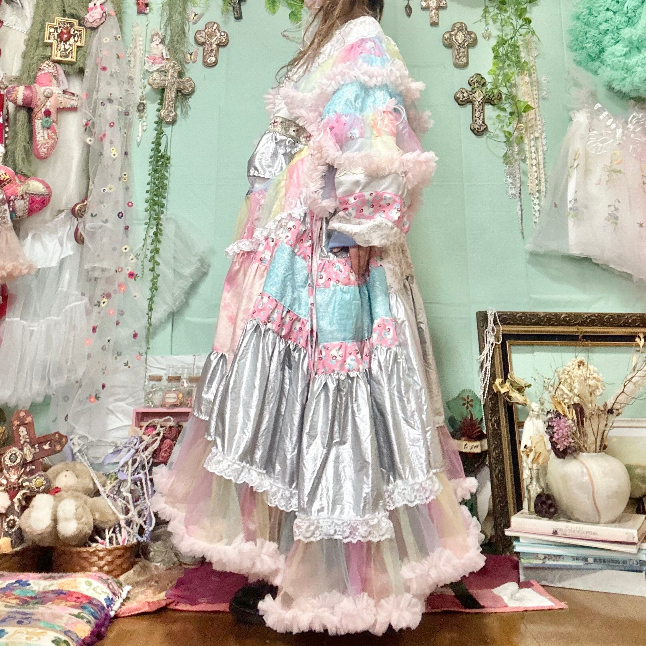 氷のようなラメ生地に重ねたレインボーのチュールはオーロラのように