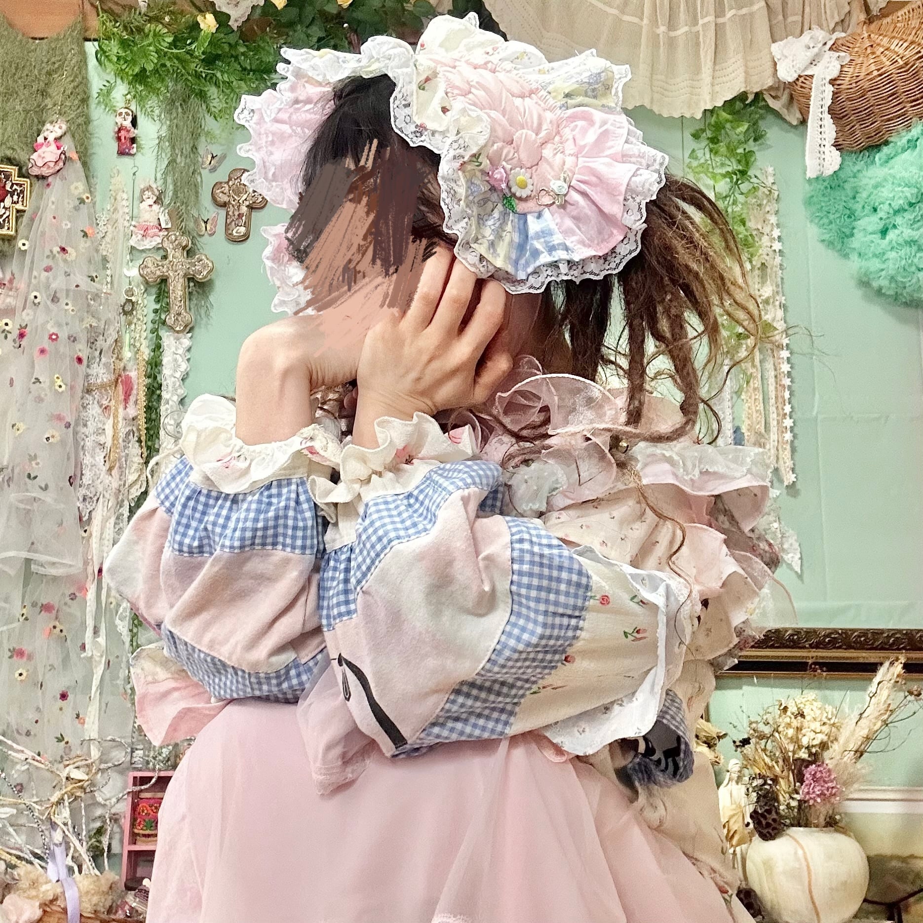 [DREAM PINK]Used L/S T-shirt remake tops , dress headdress set.